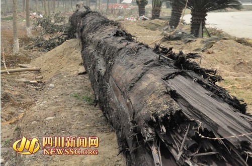 烏木被打撈上來(lái)后,被放置在岷江大橋頭的一廠房院壩內(nèi)。“為了妥善安置烏木,我們專(zhuān)門(mén)為它量身定做了一個(gè)‘窩’,將烏木放置進(jìn)去,然后蓋上土,用水潑濕,以保證烏木的濕度?!惫ぷ魅藛T稱(chēng)。