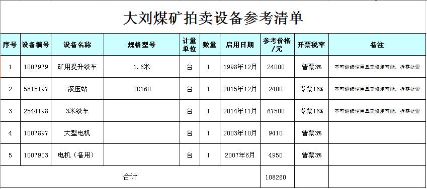 關(guān)注微信公眾號(hào)我公司受委托,定于2018年7月25日10時(shí)在徐州市中山南路55號(hào)副樓三樓本公司拍賣大廳公開拍賣:徐州市大劉煤礦、柳新煤礦的二手設(shè)備一批。