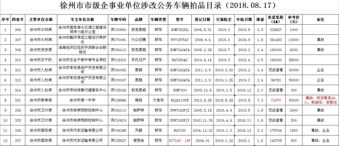 一、拍賣標(biāo)的:徐州市企事業(yè)單位改革公務(wù)車輛(詳見每期拍品目錄)。