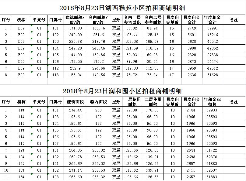 關注微信公眾號我公司受委托,定于2018年8月23日10時在中山南路55號本公司拍賣廳對以下小區(qū)商鋪公開拍租:湖西雅苑、和風雅致、漢襄佳苑、尚景園、潤和園、嘉和雅苑等。商鋪共數(shù)十套,均為空房,面積分別為一百至數(shù)百平方米不等。租期均為3年。