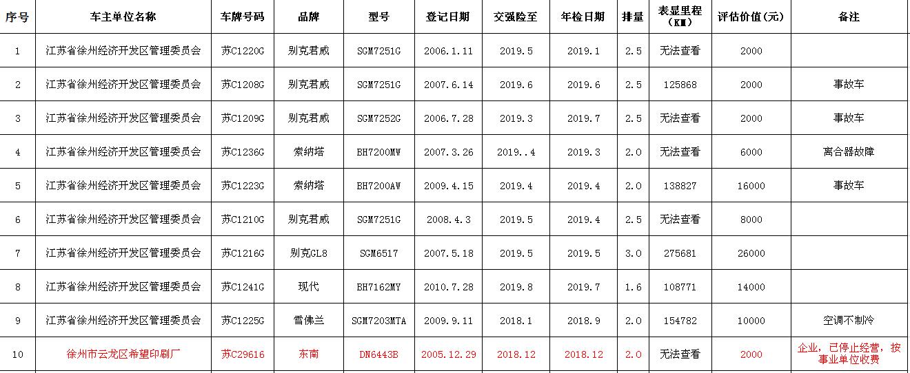 關(guān)注微信公眾號我公司受委托,定于2018年9月14日10時在中山南路55號三樓本公司拍賣廳公開拍賣:江蘇銀行股份有限公司徐州分行、徐州經(jīng)濟(jì)技術(shù)開發(fā)區(qū)、銅山區(qū)、云龍區(qū)公務(wù)車輛二十余輛。主要車型有帕薩特、皇冠、道奇、別克、克萊斯勒等。