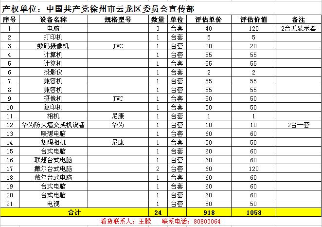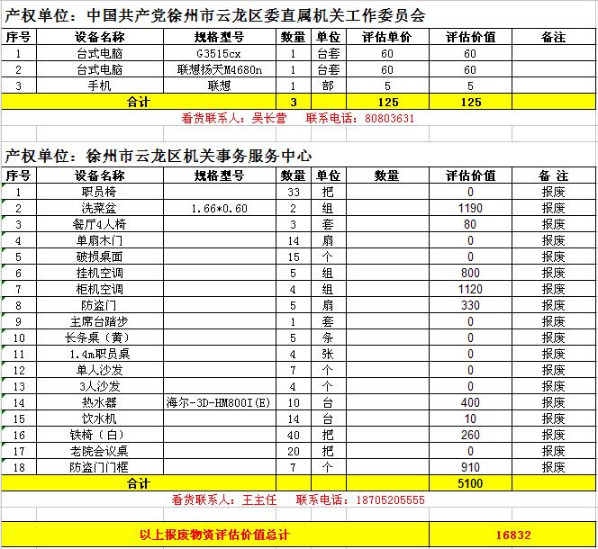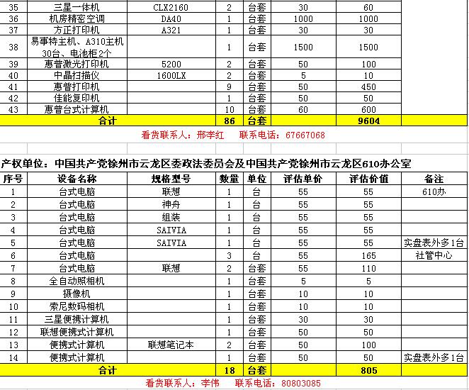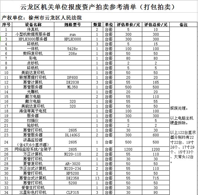 1. 云龍區(qū)數家單位廢舊辦公設備一批,主要包括:廢舊電腦、復印打印機、攝像機、空調、辦公家具等。