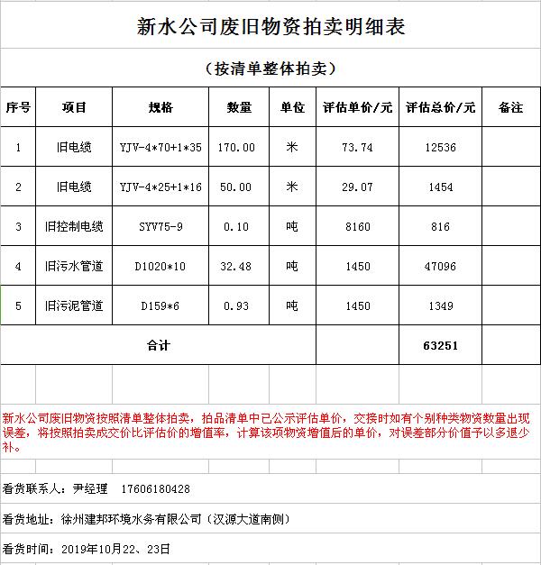 10月22、23日集中展示。有意競買者請持有效證件到我公司辦理報名手續(xù),并交納每個標的1萬元保證金即可參拍,報名截止至10月24日16時。