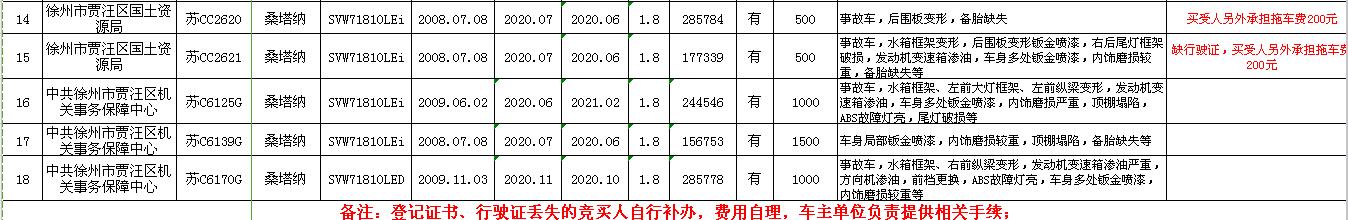 關(guān)注微信公眾號受委托,我公司定于2020年5月27日13:00時(shí)在徐州市銀地二手車交易市場四樓東南拍賣大廳通過現(xiàn)場和汽車街網(wǎng)絡(luò)拍賣平臺同步進(jìn)行的方式公開拍賣以下公務(wù)車輛: