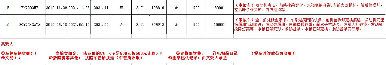 5月22日、24日在徐州銀地二手車交易市場展示。有意競買者請持有效證件到我公司辦理報(bào)名手續(xù),并交納每輛車1萬元保證金即可參拍,報(bào)名截止至5月24日16時。