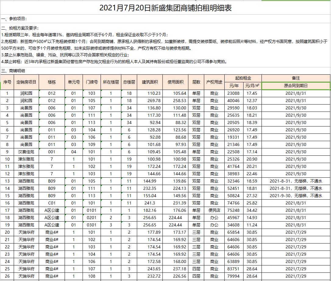 即日起展示。有意者請持有效證件至我公司報(bào)名,并交納每間商鋪1萬元保證金即可參拍,報(bào)名截止至7月19日16時(shí)。