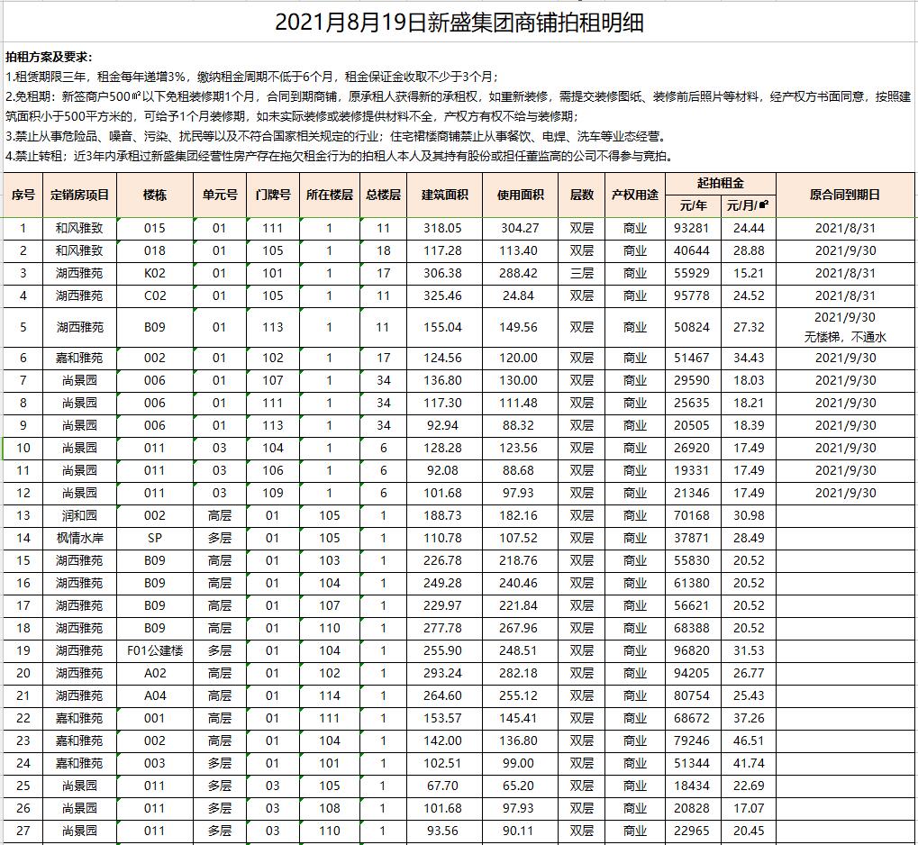 關(guān)注微信公眾號(hào)我公司受委托,定于2021年8月19日10時(shí)在徐州市中山南路55號(hào)本公司拍賣廳公開(kāi)拍租以下商鋪:湖西雅苑10間、嘉和雅苑4間、尚景園13間、玉潭佳苑3間、康馨園3間、楓情水岸1間、潤(rùn)和園1間、天瑞華府1間、和風(fēng)雅致2間。面積分別約為數(shù)十至三百余平米不等,租期均為三年。